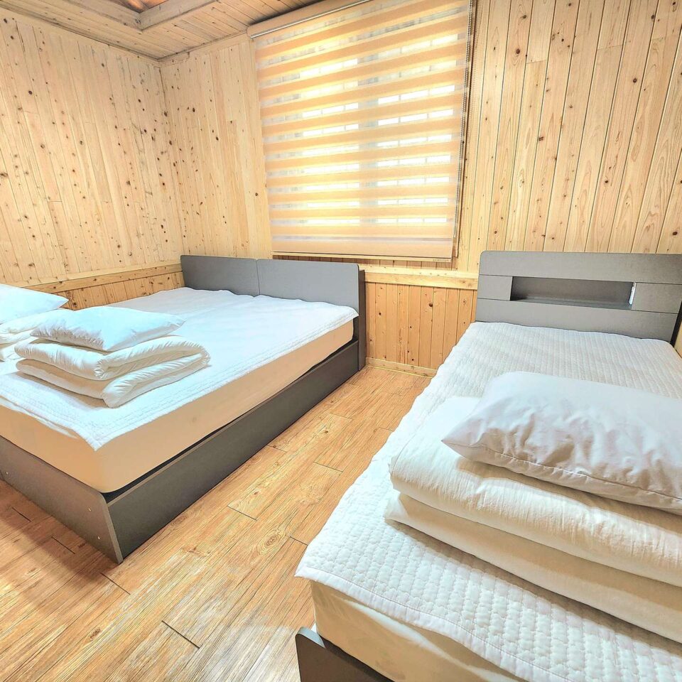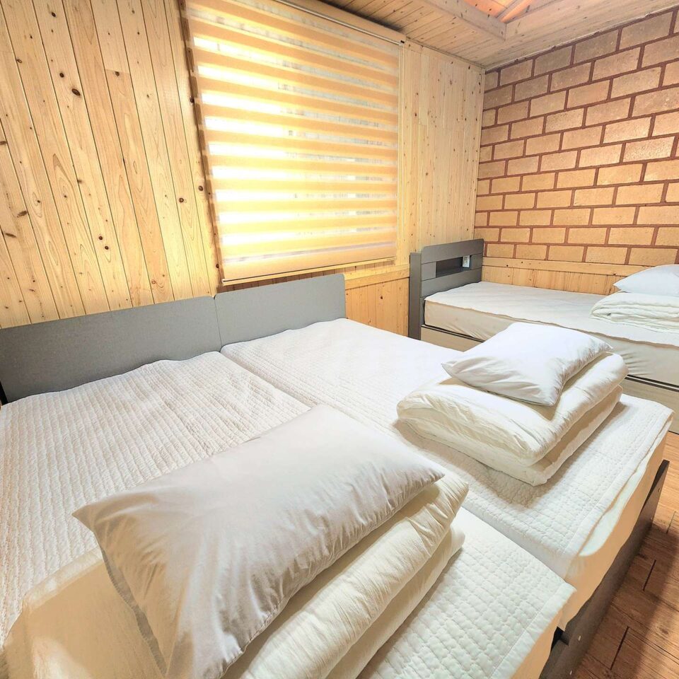 대가족이 이용할 수 있는 깨끗하고 편의시설이 다양한 객실 입니다. 13평/ 거실 / 침대룸 / 욕실 / 바베큐장 황토방 1호황토방 2호황토방 3호황토방 2층 독채목조형 별채 실시간 예약하기 ※ 인원 및 추가 요금 기본 4명~최대 5명 기본 인원 초과시 인당 1만원의 추가요금 발생 ※ 입실·퇴실 안내 입실 15:00 이후 / 퇴실 11:00 이전 ※ 구비시설 TV, 에어컨, 냉장고, 주방시설, 욕실용품, 와이파이 에이스침대 2개 더보기