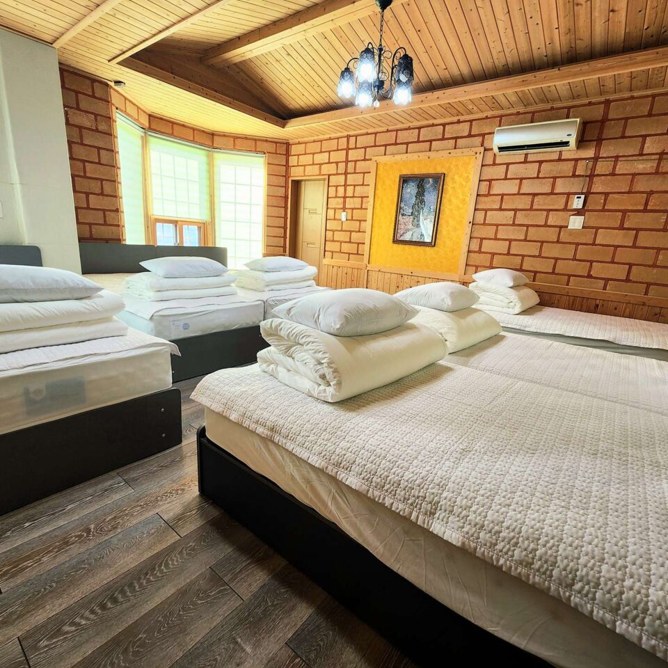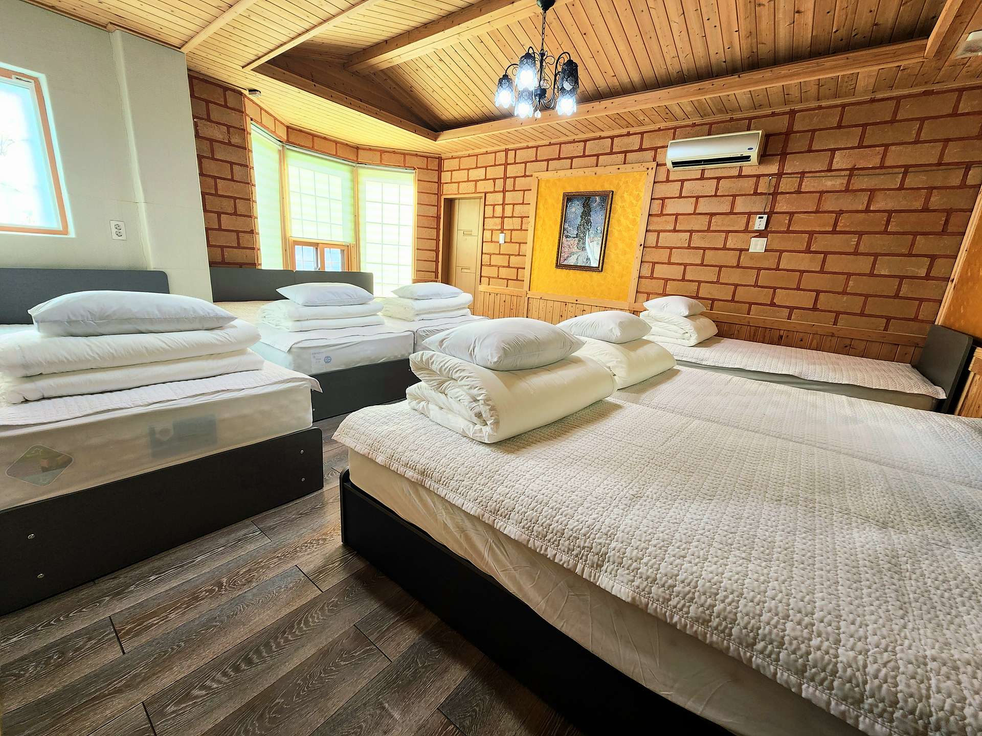 단체로 이용할 수 있는 넓직하고 편의시설이 다양한 객실 입니다. 21평/ 거실 / 침대룸 / 욕실2 / 바베큐장 황토방 1호황토방 2호황토방 3호황토방 2층 독채목조형 별채 실시간 예약하기 ※ 인원 및 추가 요금 기본 6명~최대 7명 기본 인원 초과시 인당 1만원의 추가요금 발생 ※ 입실·퇴실 안내 입실 15:00 이후 / 퇴실 11:00 이전 ※ 구비시설 TV, 에어컨, 냉장고, 주방시설, 욕실용품, 노래방, 와이파이 에이스침대 6개 더보기